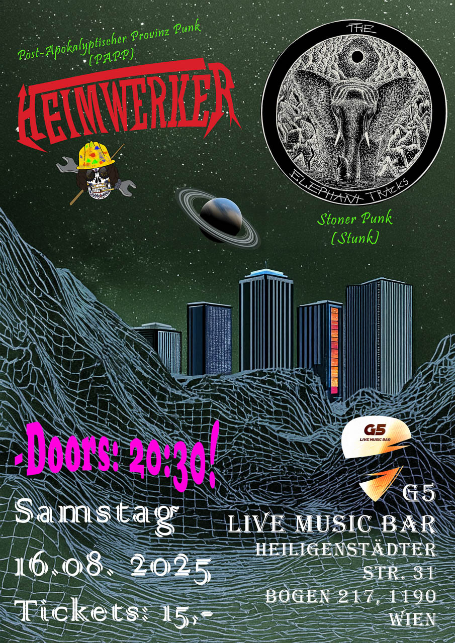 Wer es außergewöhnlich mag, ist bei Aki Streeter (er/ihm) in jedem Fall richtig! Beim Konsumieren eines seiner zahlreichen Projekte merkt man sofort, dass seine Kunst mit nichts vergleichbar ist, das man kennt. Egal ob er mit einer seiner Bands oder bei seiner Konzertreihe auftritt, es ist immer eine gewaltige Portion Selbstironie mit am Start. Gespickt mit Musikgenres, von denen man vorher noch nie etwas gehört hat, dreht sich bei dem jungen Multiinstrumentalisten alles um ein Multiversum von Schöpfer Dave. Taucht man in dieses ein, steht man im ersten Moment verloren, staunend und mit weit offenem Mund da. Wenn die ersten Geräusche auf einen einprasseln holt einen der junge Kärntner aber mit seiner sympathischen Art ab. Es ist schön zu sehen wie Aki Streeter zeigt, dass sich jüngere Generationen an Genres und Stile herantrauen die sich nicht an Altbekanntem festhalten um dabei nur zu versuchen, den Geschmack aller zu treffen.Heimwerker