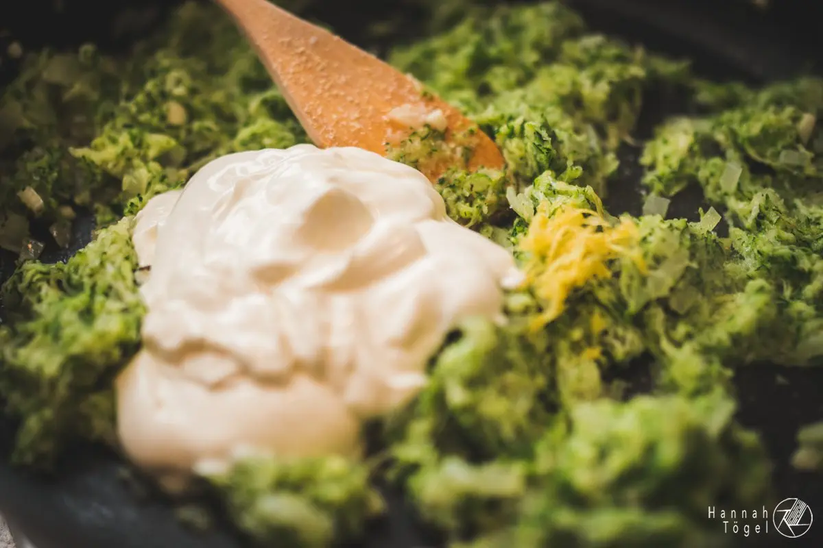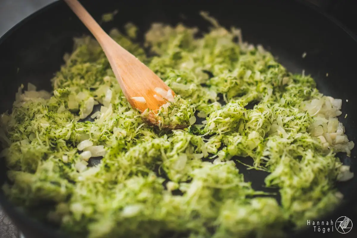 Für die Soße die Zucchini reiben und das überschüssige Wasser ausdrücken. Knoblauch fein hacken, wer möchte auch eine Zwiebel, und in einer tiefen Pfanne in etwas Olivenöl andünsten. Anschließend die Zucchini zugeben und kurz mitdünsten. Für den Extrageschmack kann man jetzt noch den Abrieb einer Zitrone hinzugeben. Mit dem Joghurt nun das Ganze zu einer Soße binden und kurz köcheln lassen. Zum Schluss noch mit Salz, Pfeffer und Zitronensaft abschmecken und kurz vor dem Anrichten, wenn nötig, mit etwas Nudelwasser sämig machen.
