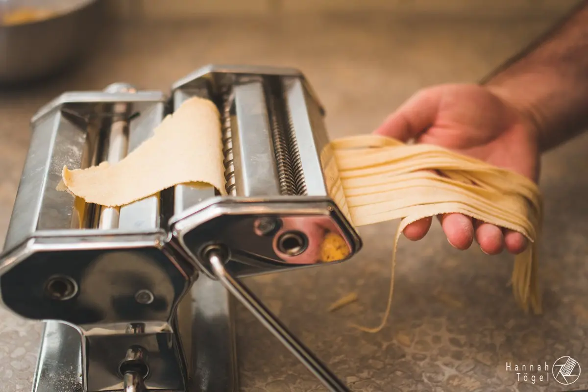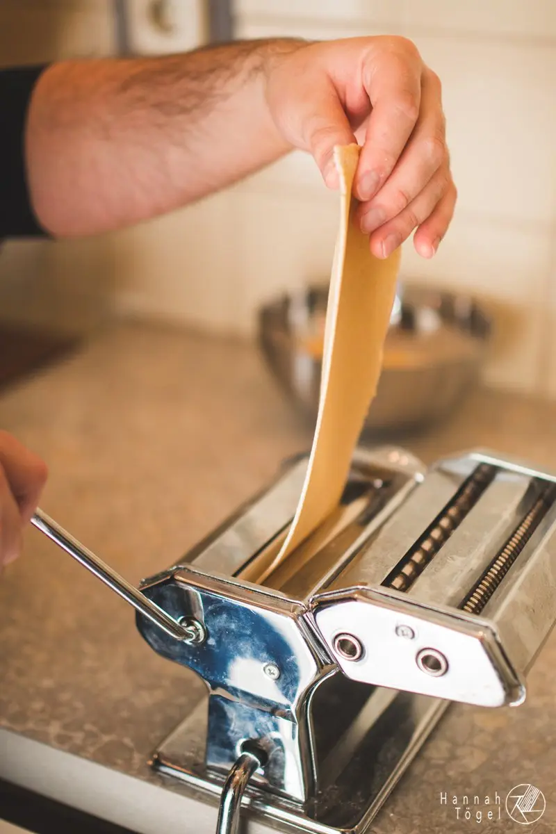 Wer die Nudeln nicht selber machen möchte kann natürlich auch gekaufte verwenden, aber jeder sollte einmal in den Geschmack von frischen, selbst gemachten Nudeln gekommen sein und auch sehen, dass diese nicht schwer herzustellen sind.