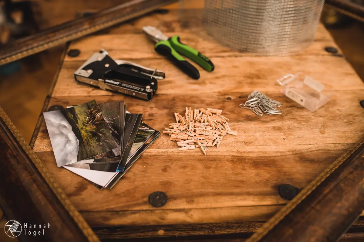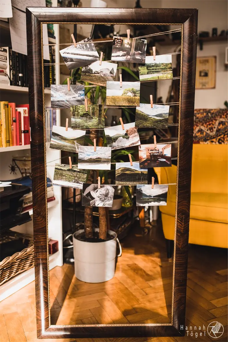 Schon lange haben wir nach einer Möglichkeit gesucht, um günstig, schnell und einfach mehrere Fotos auf einmal in unsere alten, ausgeschlachteten und lange schon leer hängenden Bilderrahmen, zu hängen. Zum Schluss haben wir uns für zwei Methoden entschieden. Bei der einen spannt man auf der Rückseite des Rahmens zwischen Schrauben, oder Nägeln eine Schnur oder Seil und kann dann auf diesem die Bilder mit Klammern, Büroklammern oder ähnlichem aufhängen. Die zweite Variante, bei der es einfacher ist, die Fotos an mehreren Seiten festzumachen und damit unerwünschtes Biegen der Bilder zu verhindern, zeigen wir euch hier etwas genauer.