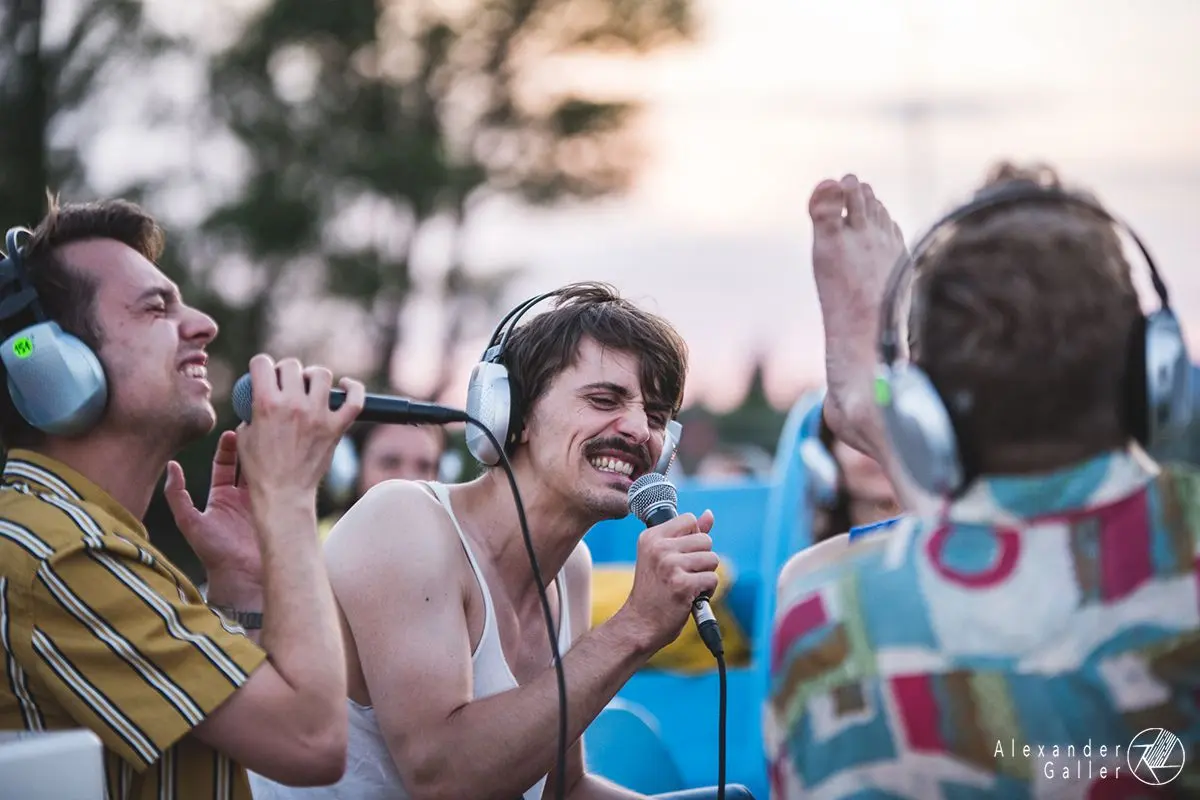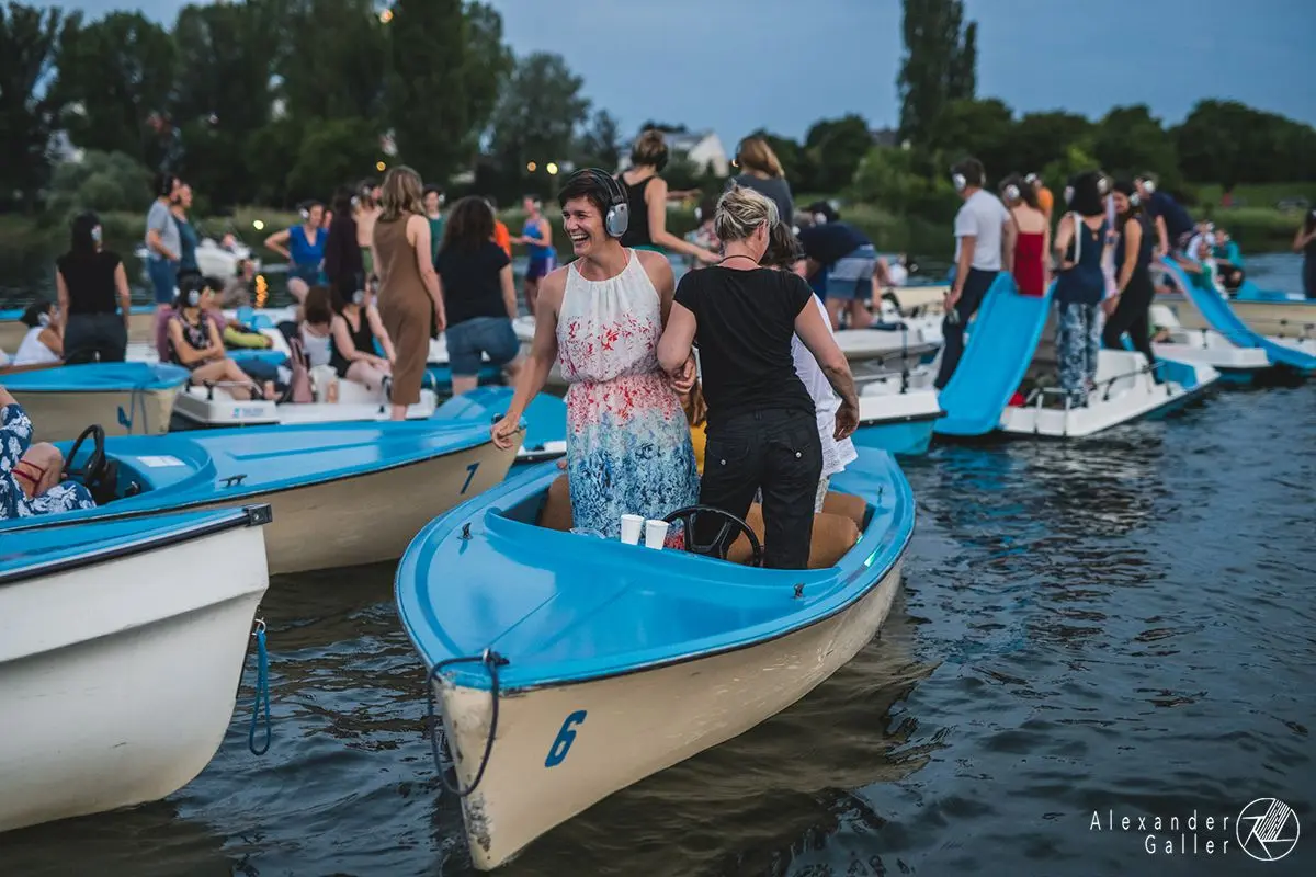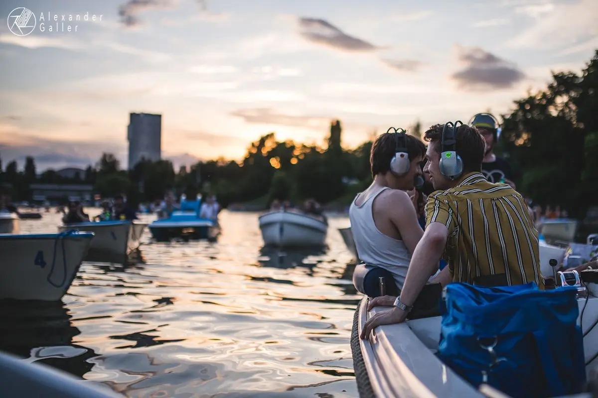 Oliver Hangl macht nicht nur Baulückenkonzerte, sondern auch noch viele andere Projekte. Eines davon sind seine "Silent Bootskonzerte". So besang die Gesangskapelle Hermann, eine 6 köpfige a cappella Boygroup die Alte Donau, während die Zuhörer das Konzert über Funkkopfhörer mitverfolgen konnten. Mit ihrem mehrstimmigen Gesang und ihren Melodien, sowie Texten konnten sie trotz des gleichzeitig stattfindenden Donauinselfests und anfänglichen technischen Problemen überzeugen.Oliver Hangl doesn't only organize Baulückenkonzerte, but also many other projects. One of them are his exciting "Silent Bootskonzerte". So the Gesangskapelle Hermann, a 6-headed a cappella boygroup, sang on the Alte Donau, whilst the audience listend to the concert through radio headsets. With their polyphonic singing and melodies, as well as their lyrics, they were able to delight, even though they had some technical issues at the beginning and the big Donauinselfest took same at the same time.