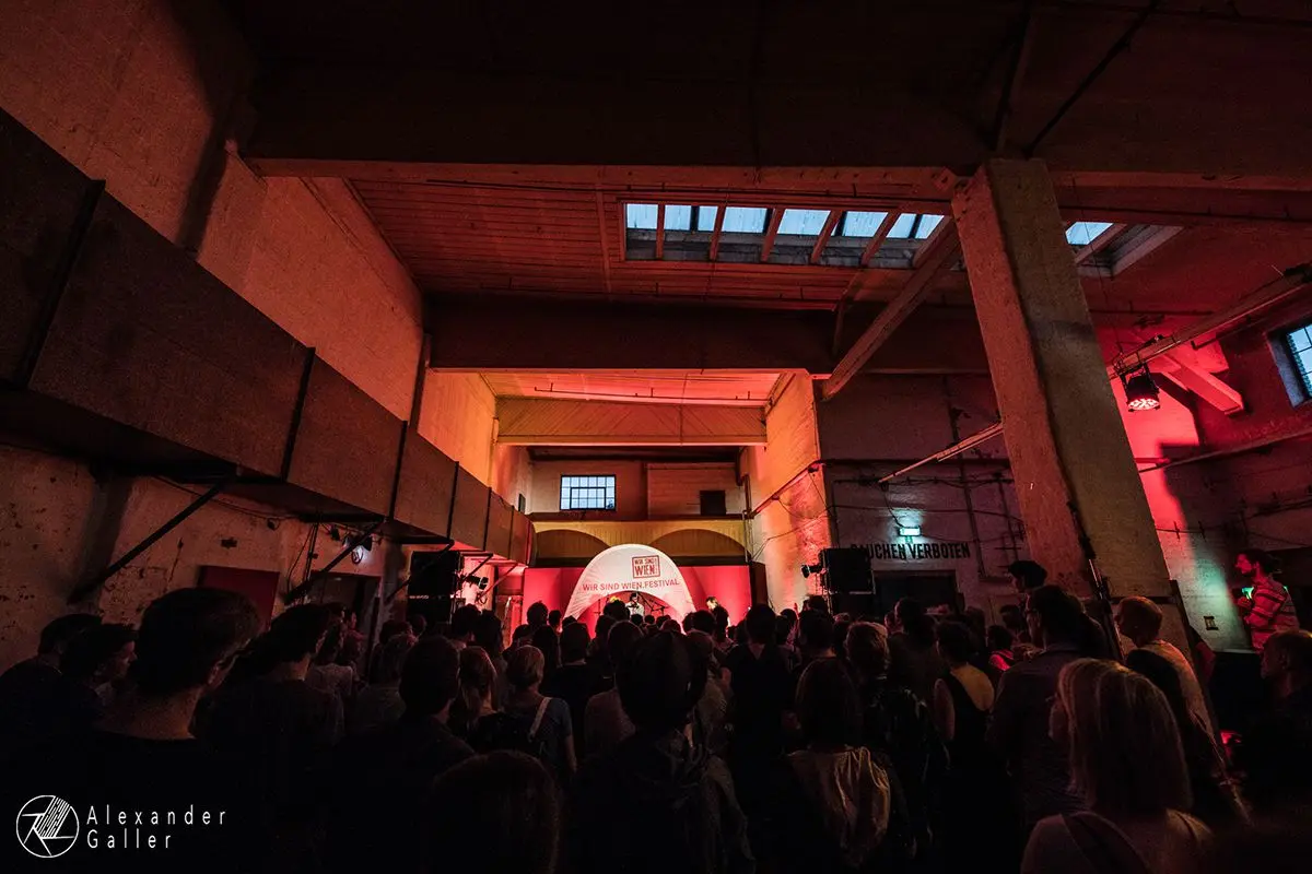 Im F23, einer ehemaligen Sargfabrik ging ein tollesWIR SIND WIEN.FESTIVAL 2019, aber auch dieBaulückenkonzertserie 2019 zu Ende. Mit Ankathie Koi stand zum Abschluss noch einmal ein würdiger Act auf der, in rotes Licht gehüllten, Bühne. Zuerst wurden die Sessel weggeräumt um Platz zum Tanzen zu schaffen und dann mit schillernden Outfits und Dancepop richtig Stimmung gemacht. E-Drums, Keytars, eine geballte Ladung 80er-Extravaganz, zum Teil interpretierte U-Bahngespräche als Texte und ihre lebendigen Stimme ließ die alten Hallen des F23 erbeben.
