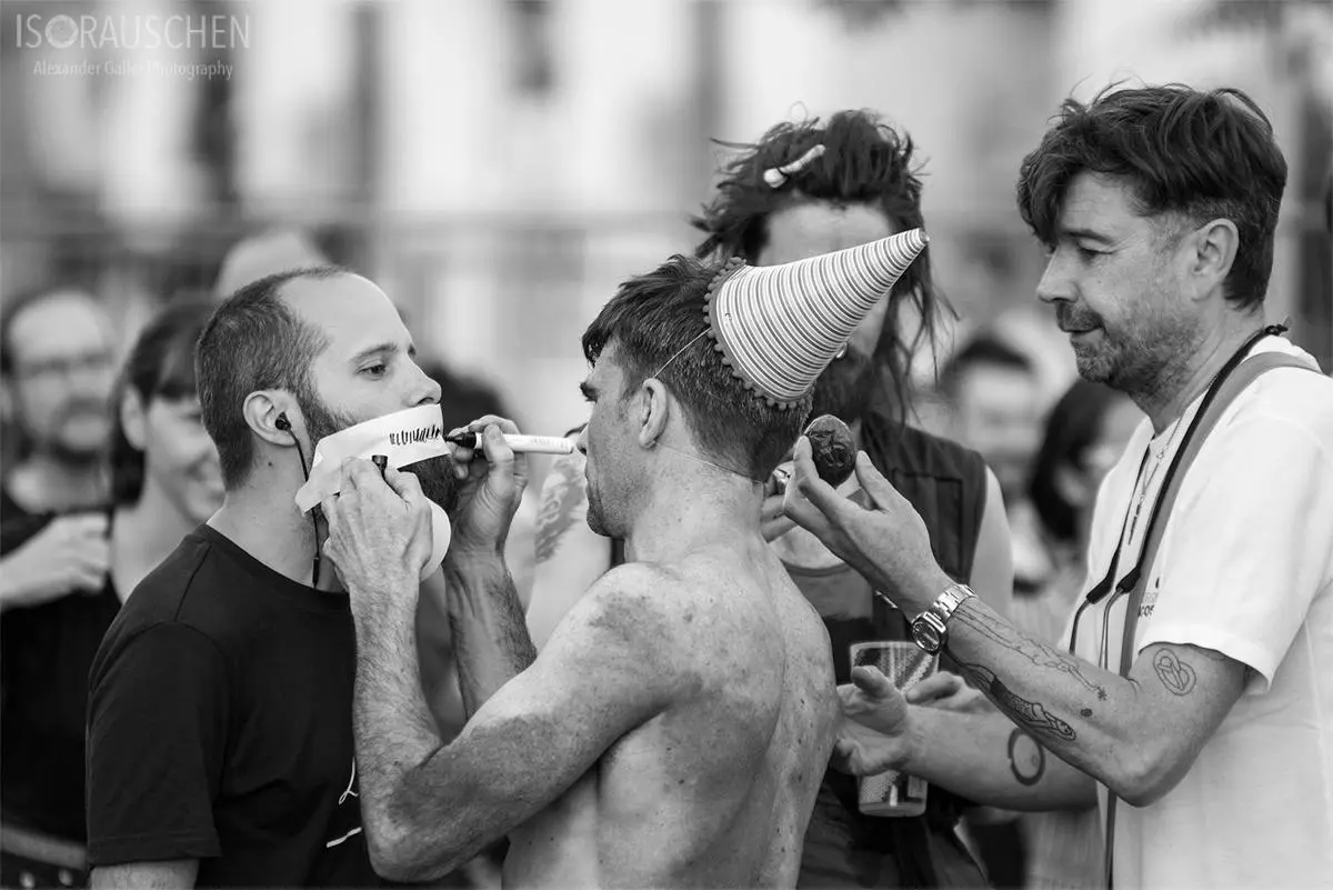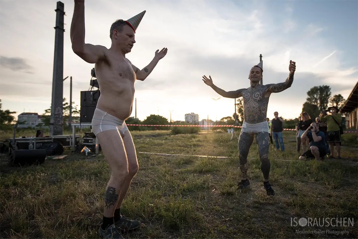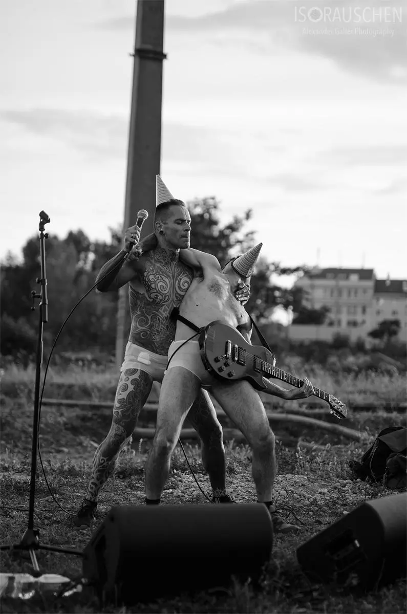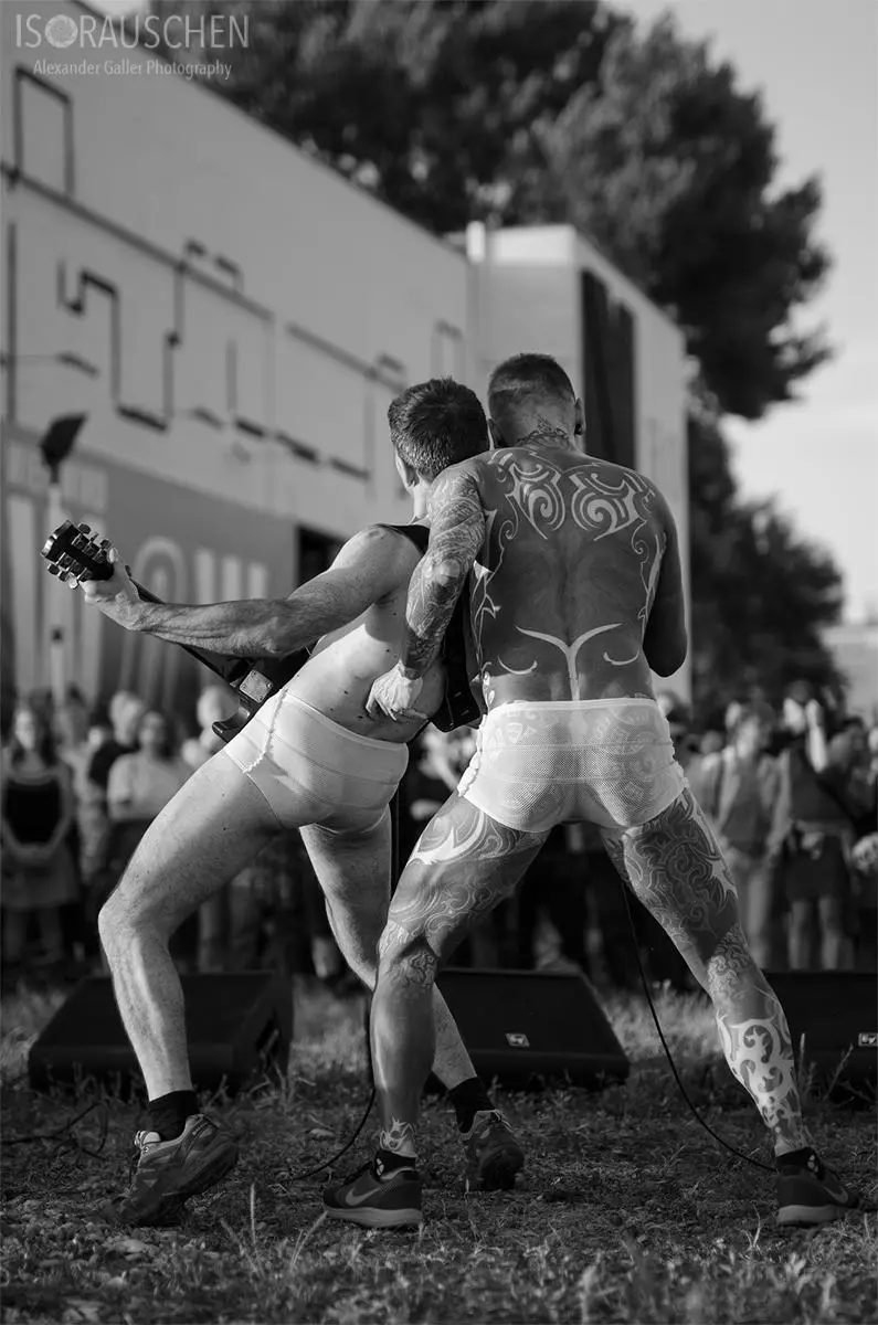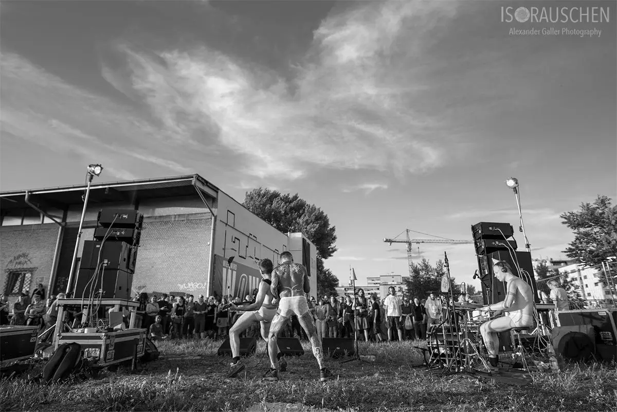 Schon zu Beginn löste das Vierergespann in Netzunterhosen mit ihrem Tanz verschiedenste Reaktionen in den Gesichtern der zahlreichen Zuseher aus. Von Irritation bis Euphorie konnte man alles erspähen, ohne dass noch ein Song gespielt worden war. Die Spannweite ihrer Musik reicht von Drum'n'Bass bis zu psychedelischen Rockpassagen und wird definitv von ihren ausdrucksstarken Texten unterstrichen. Wie für das Genre Industrial üblich, lebte auch dieses Konzert von einer exzentrischen Bühnenshow, welche perfekt in die dafür ausgewählte Endzeit-Baulücke passte.