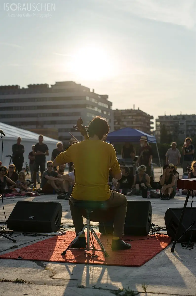 At a huge, empty car park at Neu Marx, the Donauwellenreiter, dressed in mustard yellow outfits, played the seventh Baulückenkonzert, which was the last show of their tour at the same time. With their virtuoso and mesmerizing music they elicited a very special charm out of the bleak concrete landscape. In contrast to the hard shadows on the hot asphalt, it was a harmonic and calm concert, which had quite pulsing and buoyant parts as well.