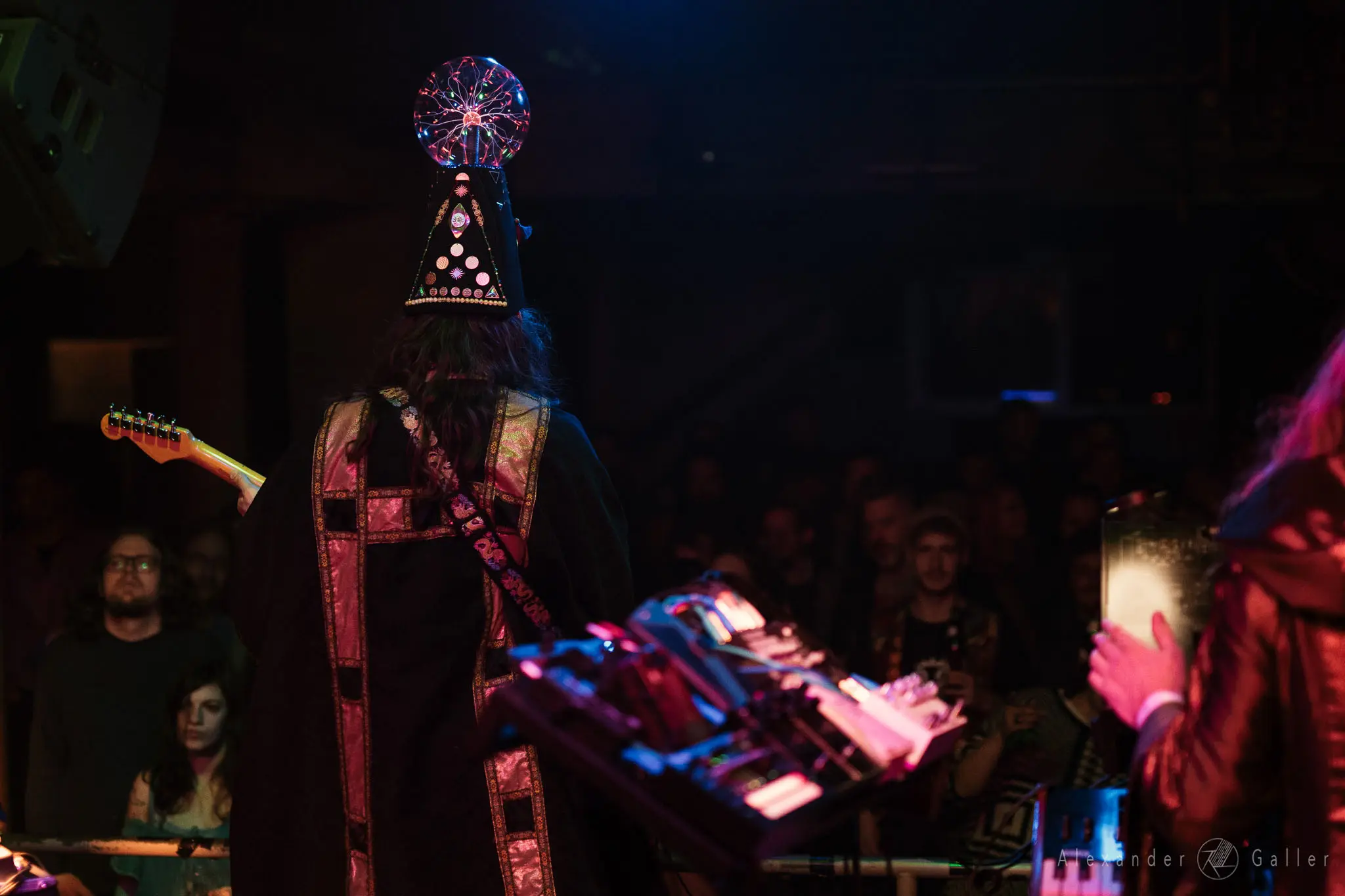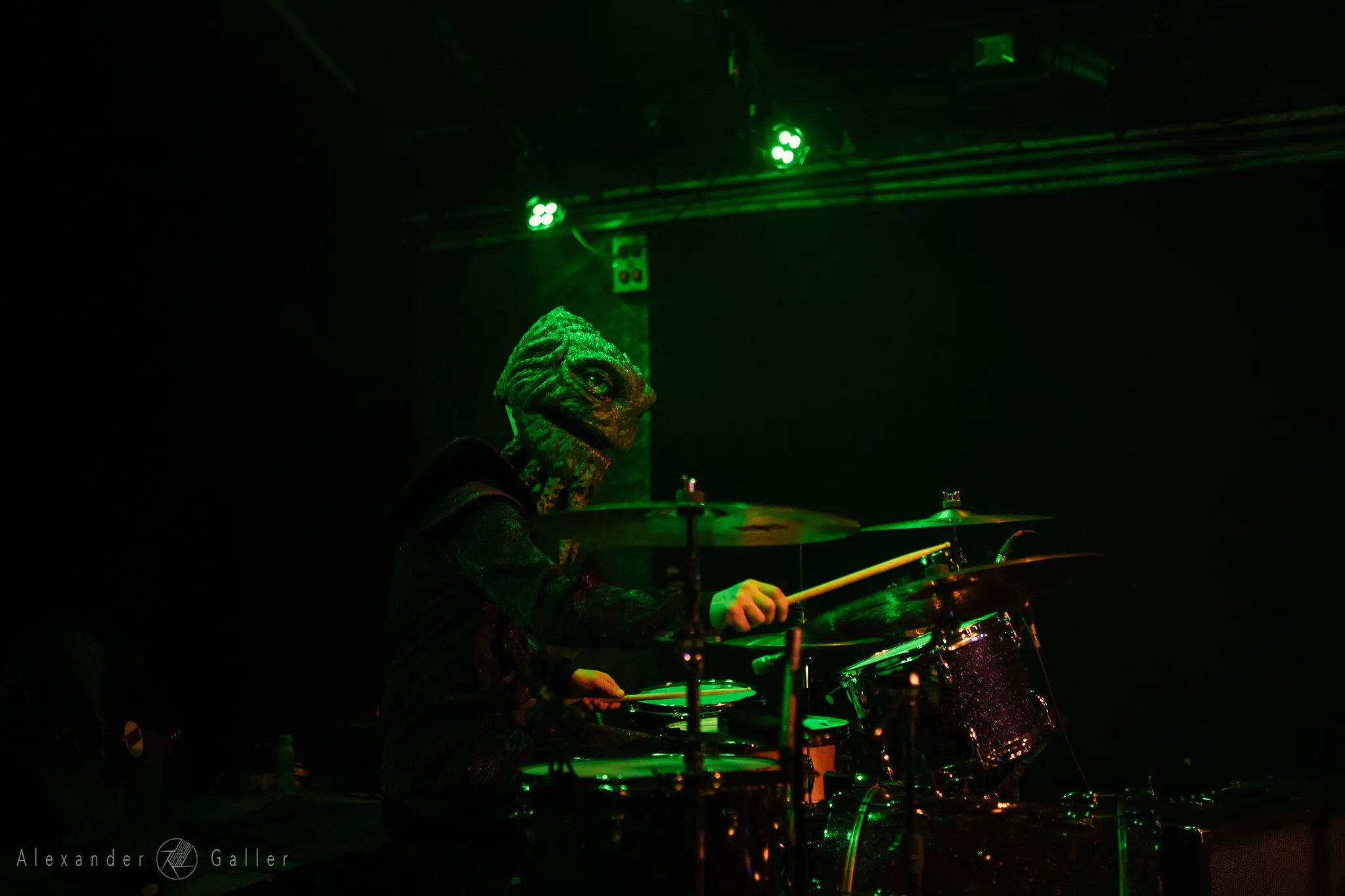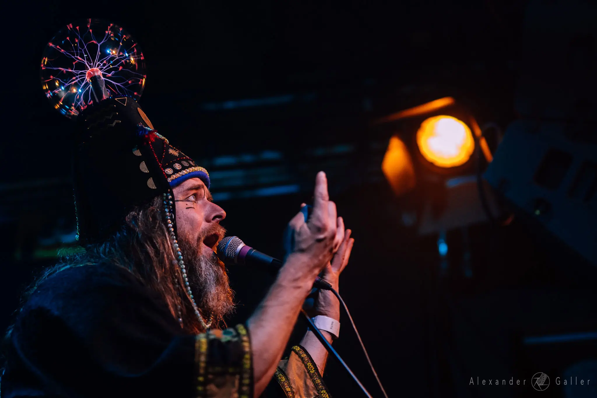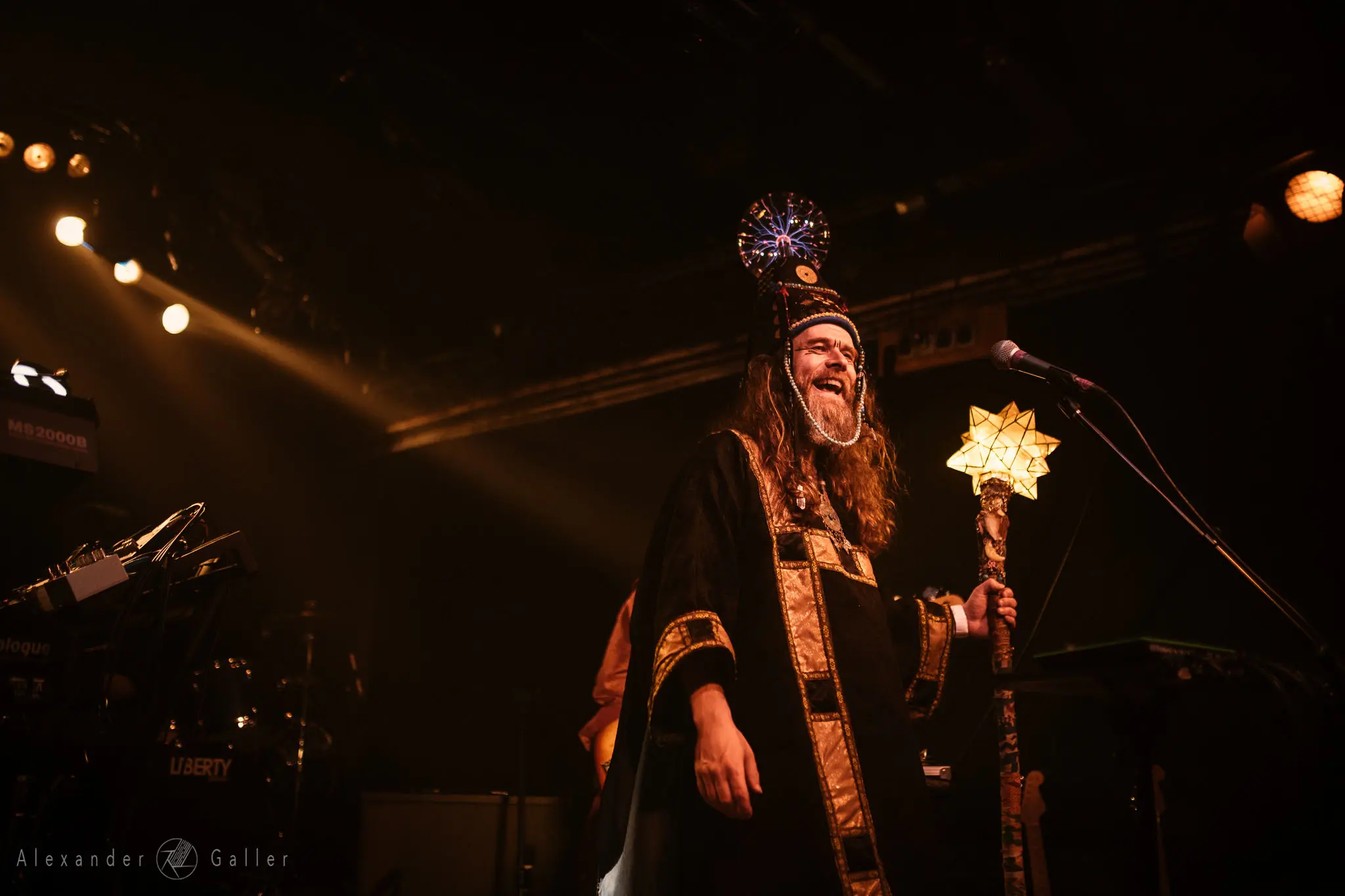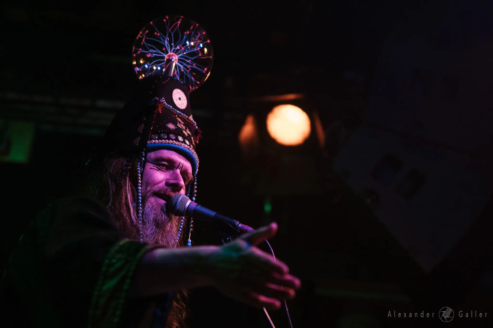 Wesentlich konzeptioneller ging es dann bei Henge her. Eine Band, ansässig im weltlichen Manchester, aber ein bunte Truppe zusammengewürfelt aus Wesen aus dem ganzen Universum. Zpor, der von seinem Heimatplaneten Agricular flüchten musste weil sein Zentralgestirn ihn verschlang, sammelte auf seiner Reise durch das Universum verschiedene Musiker und Einflüsse auf. Komplettiert wird die Band von Goo, Grok und Nom. Ihr Ziel ist es durch das Medium "Cosmic Dross" Frieden, Liebe, Nachhaltigkeit und Entmilitarisierung zu fördern und zu verbreiten. Dies machen sie mit einem bunten Mix, so vielfältig wie die Möglichkeiten im Universum Leben zu finden. Ein rockiger Mix mit Einflüssen aus Rave, Metal aber auch traditionell "erdlichen" Musikrichtungen. So klangen Teile ihres Sets wie aus Super Mario gemischt mit Rage Against the Machine und getanzt wurde dann zu Polka.