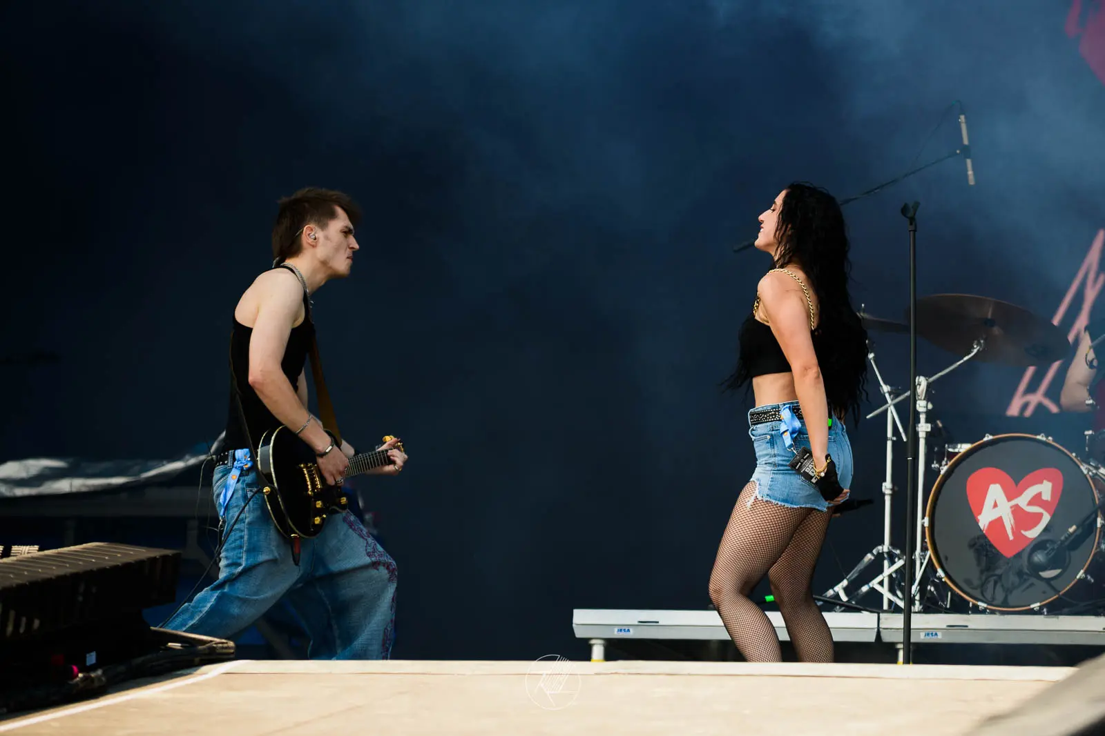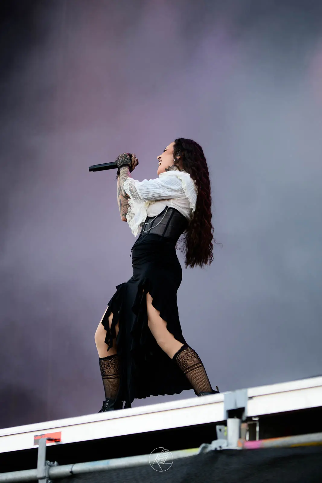Die absolute Frauenpower brachte Tag 2. Beide Bühnen wurden von starken Frauen eröffnet. Auf der Red Stage brachten Kittie zu früher Stunde das Publikum in Extase und parallel durfte die österreische Sängerin Anna Sophie den Tag auf der Blue Stage eröffnen. Beide Gruppen könnten unterschiedlicher nicht sein – während Kittie, als voll weiblich besetzte Band, hart und laut den männlichen Metal Bands um nichts nachstehen hat Anna Sophie mit poppigerem Sound voller Dankbarkeit und Motivation vor kleinem Publikum richtig Stimmung gemacht. Ihre volle Weiblichkeit, mit all der Energie die sie zu bieten hat, zeigte LOLO, deren Sound überraschend rockig der Crowd einheizte. Das ukrainische Stimmwunder von Jinjer durften an diesem „Day of Females“ nicht fehlen und brachte genau das ans Tageslicht was von ihr erwartet wurde: Absolute Faszination bei allen Zuhörenden. Mit einer ähnlichen stimmlichen Brutalität, mit aber wesentlich mehr singenden Parts, beherrschte Poppy ihr Publikum. Schade nur, dass bei ihrer Show keine Fotos gemacht werden durften. Auch die Red Bull Stage machte die Bühne frei für eine Künstlerin. Vowws brachte mit Sonnenbrille und Zigarette den absoluten Coolness Faktor aufs Nova Rock Festival. Zum Abschluss des Tages waren beide Headliner mit weiblicher Besetzung ausgestattet. Auf der Red Stage bespielten Cradle of Filth ein kleines aber motiviertes Publikum während die Blue Stage das langersehnte Bühnen Comeback von Linkin Park mit neuer Frontwoman Emily Armstrong abfeierte. Die Massen, die bis spät nachts zum Set tanzten, sangen und jubelten und erst nach dem Encore vom Gelände strömten sprechen für sich.