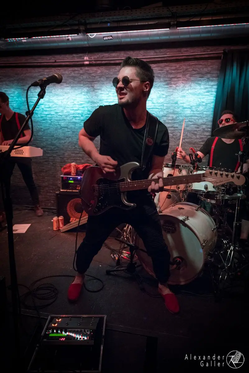 English versionSalmer streiften im Zuge ihrer Schabernack - Tour auch den Kramladen Wien und rockten in ihrem ganz eigenen, wahnsinnig exzessiven Stil die Hauptstadt. Mit einer Mischung von Pop bis Heavy Metal wurde das Publikum im gut besuchten Kramladen aufgeheizt. Nicht nur musikalisch, sondern auch für die Augen gab es etwas; eine ausgelassene Bühnenshow mit allem was dazugehört. Für einen Abend gefüllt mit musikalischen Hochgenüssen, fehlte nur noch der richtige Support: Max Schabl, seines Zeichens Singer-Songwriter und Austropoplegende in Ausbildung, konnte mit seiner Gitarre, Mundharmonika und die, mich an Hans Söllner erinnernden, Art überzeugen und den Abend für Salmer eröffnen .In the course of their Schabernack - Tour, Salmer performed at the Kramladen and in their very own, mad excessive way they rocked the capital city. With a mixture of all kinds of genres, from Pop to Heavy Metal, the crowd got heated up at the well visited club. Salmer didn't only offer their music, there was also entertainment for the eyes; a wild stage show with everything that goes with it. For an evening full with musical treats, the right support was guaranteed as well: Max Schabl, Singer-Songwriting and an Austropop-Legend to be, opened the evening for Salmer and with his guitar, his harmonica and his character, which reminded me of Hans Söllner, he captivated the crowd.