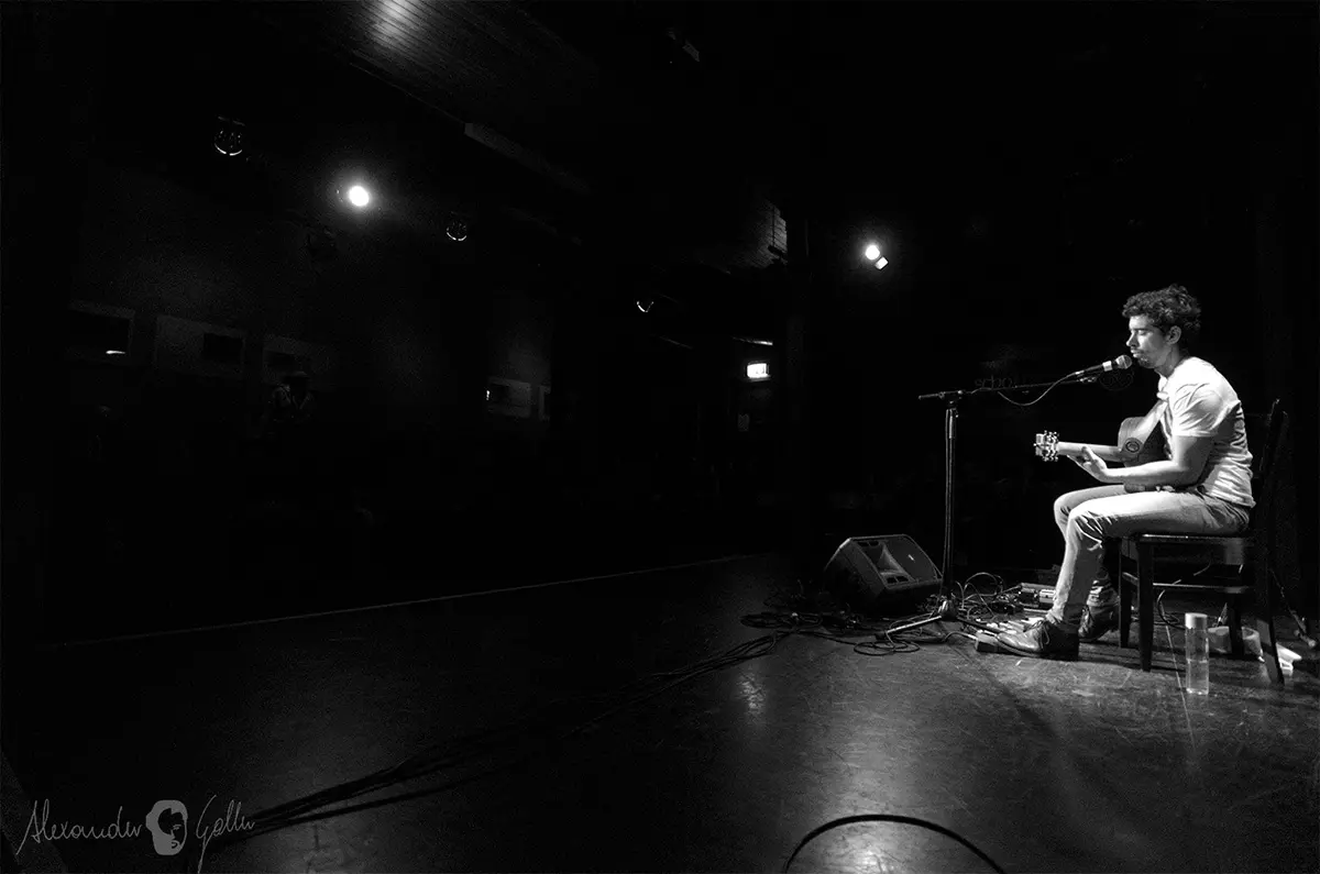 The First Austrian Piping School opened the concert at the Theater am Spittelberg. Mark Peters was the next act, showing playful guitar skills, harmonic melodies and a warm soft voice. Afterwards Stuart Neville entertained the audience with a little more powerful and traditional sounds and lyrics. The main act was Oliver Welter, singer of Naked Lunch. Hard pick strumming guitars, husky voice, melancholic lyrics. Without wanting to compare, at times it reminded me of Kurt Cobain.