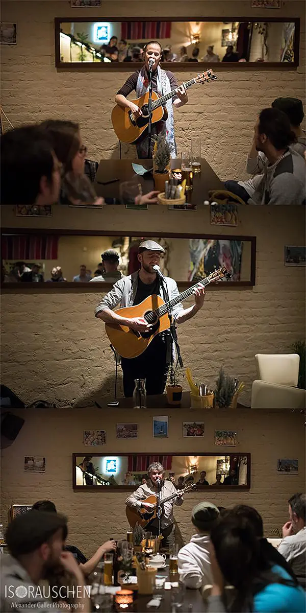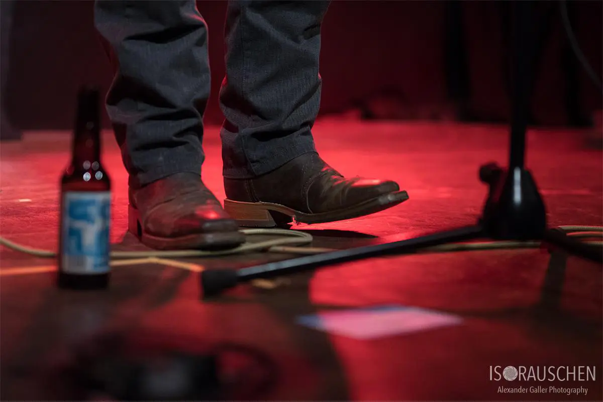 Doug opened the evening at the AERA, which presented three artists with very different musical styles of the singer-songwriter genre. Not just his boots, but also his music remind of the midwest. Doug impresses with his deep calming voice, the emphasized guitar accompaniment and his thoughtful lyrics.