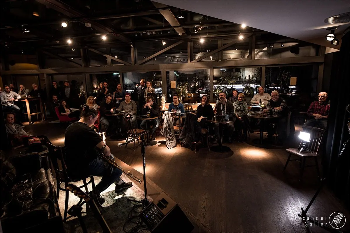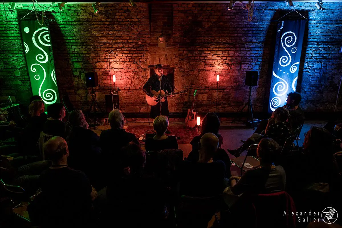 The second day got started in the early afternoon at Molly Darcy's with a lecture about the history of the Scottish in Vienna and the Schottenstift, at which afterwards there was a guided tour for the visitors of the festival.In the evening, once again there was the main event at the Theater am Spittelberg. The main acts of the night were Emma Langford, David Kennan and Mundy on a stage, which was wrapped in warm lights.