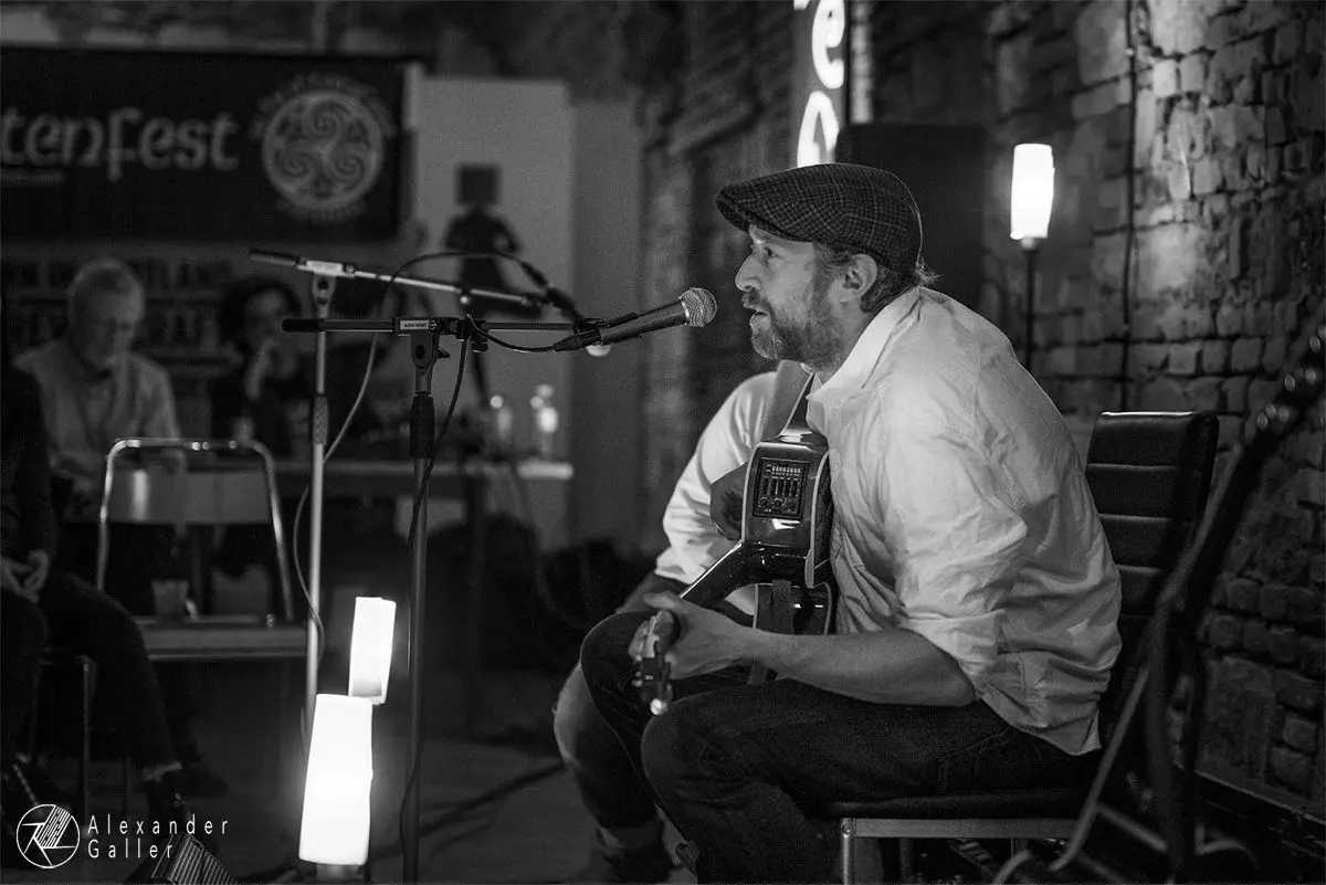 On the third day the visitors had the opportunity to join a workshop of the fantastic songwriter Ray Heffernan, before the event went on with another musical highlight at the cellar of the Schottenstift.At this wonderful room full of history, right underneath the Schottenstift, with it's impressive vaults of bricks and acoustics, Danaí Kelleher and Antonia Ní Norica opened the sunday afternoon with a short concert with the topic "Irish Roots". After a short break and a glass of Jameson, Stuart Neville carried on. As the closing and the last official act of the festival, Ray Heffernan entered the stage and fascinated the audience with his very empathetic lyrics and his sad, as well as dreamy stories behind the songs.