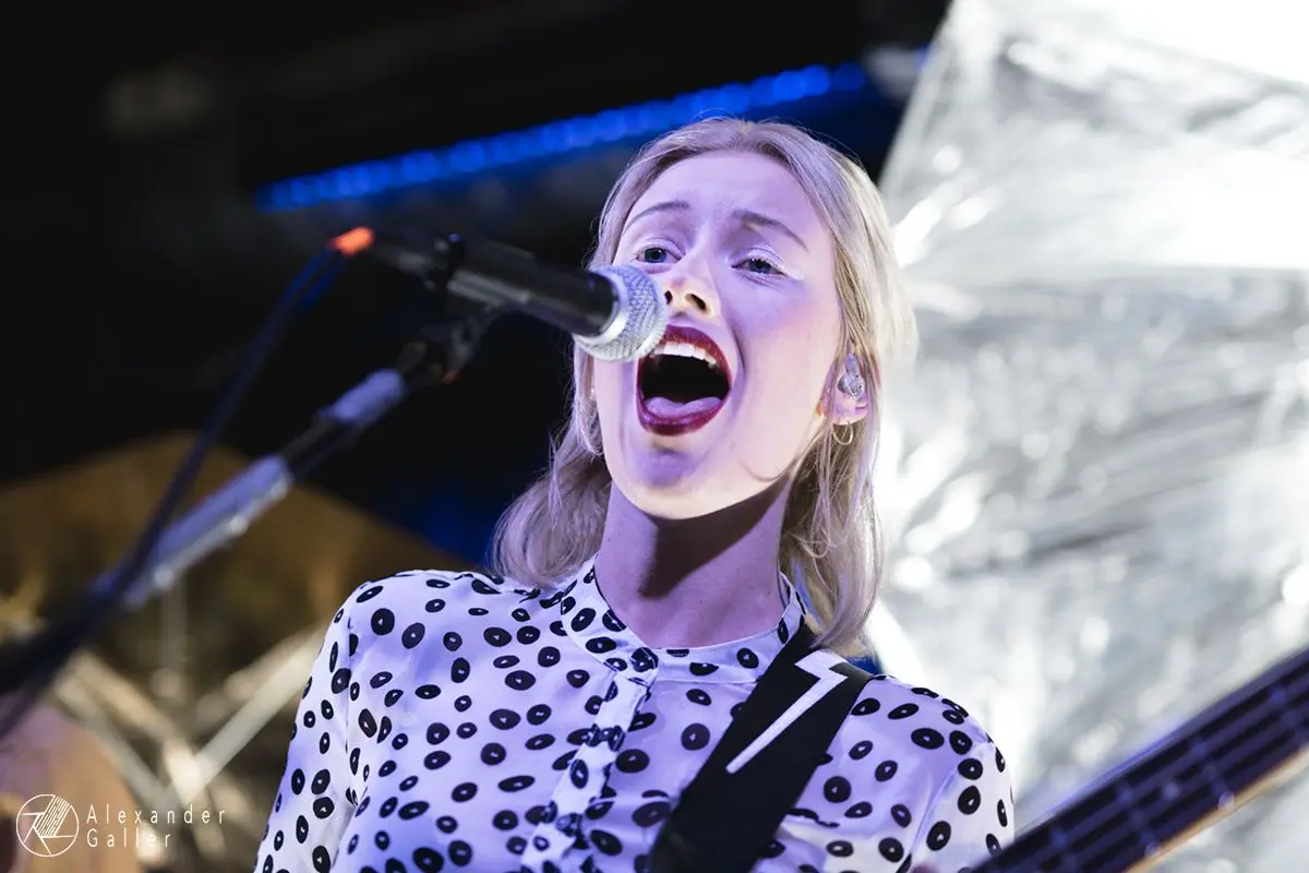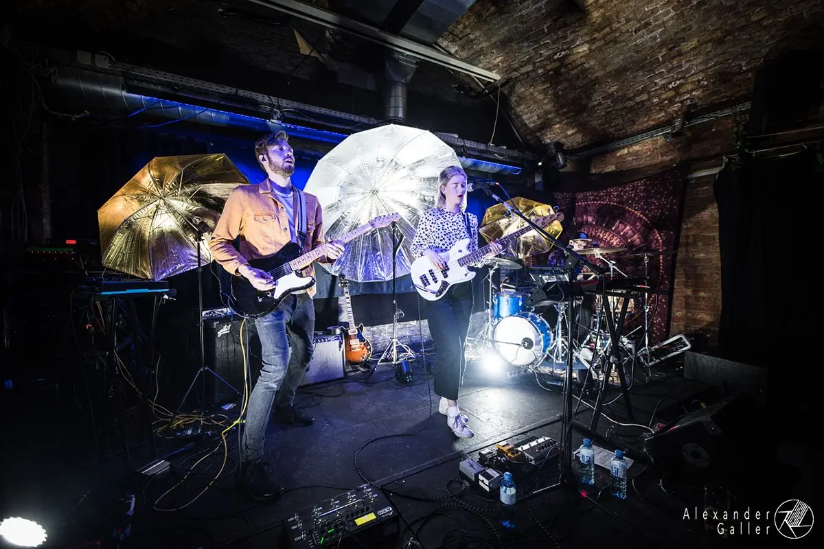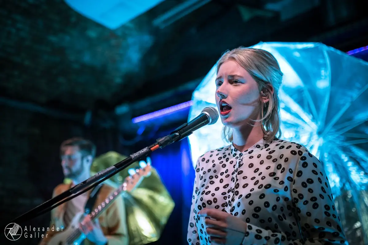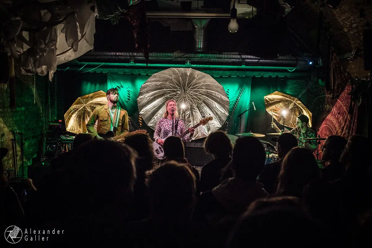 First, FLUUR opened the night. With a stage setting that reminded of a photo studio, because of all the reflectors and the added lights, the Viennese trio perfectly entertained the large audience at Kramladen. Their light, playful sound around the voice of front woman Sabeth was supported by impelling drumbeats, as well as by modern synth- and guitar-sounds.