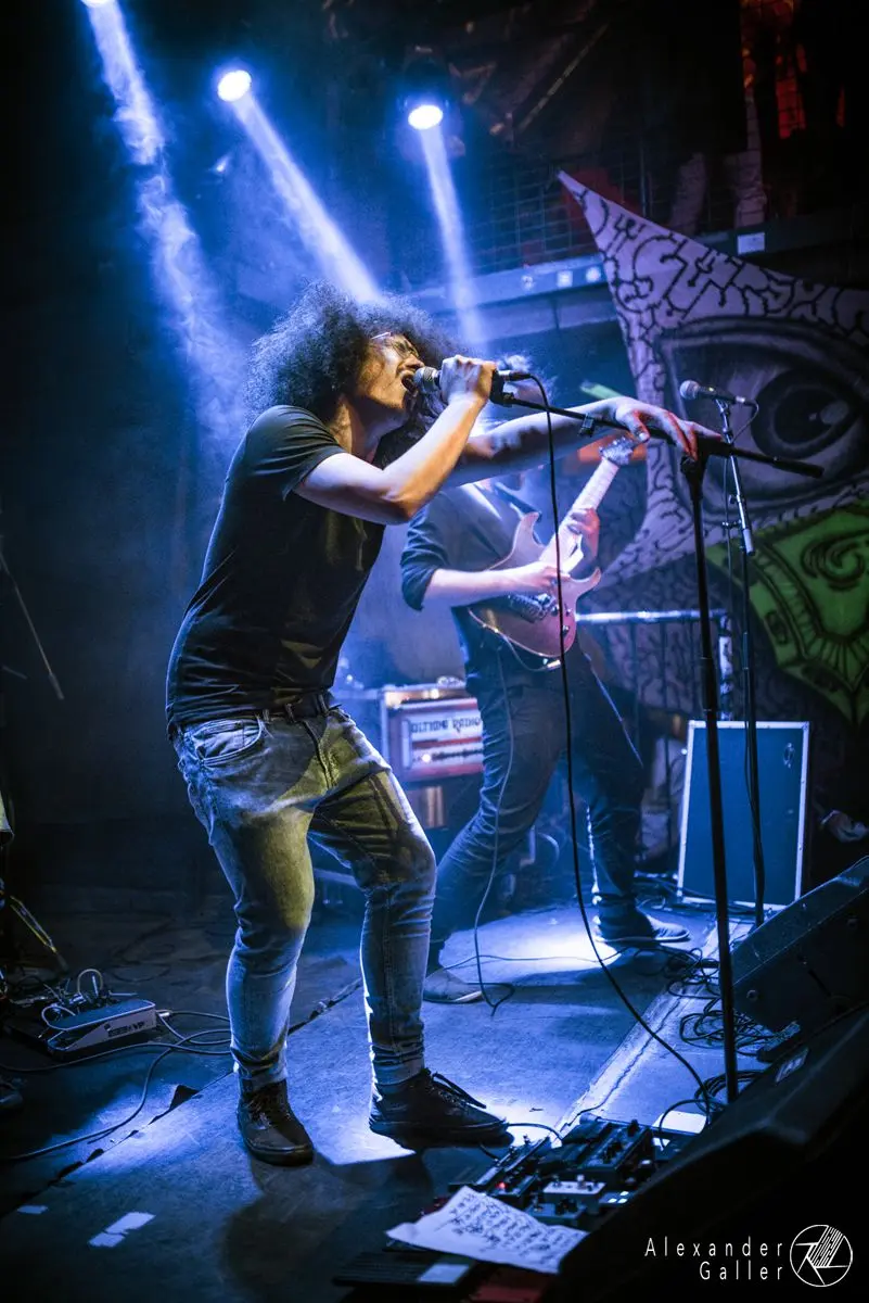 Schließlich, als die Stimmung im gut besuchten B72 am Kochen war, betraten Cadû die Bühne und boten, was die Aufmachung des Raums und der Bühne von Anfang an vermuten lies. Unterstützt durch Projektionen, Tücher und jede Menge Lichteffekte, ging es auf eine psychedelische Reise, welche definitiv zum Headbangen einlud. So ging eine heiße Stoner Rock Night mit ausgedehnten Soli, ausgefallenen Effekten, wundervoll eingestzten Rhythmen und vielfälltigen Elementen, sowie tollem Gesang, zu Ende.