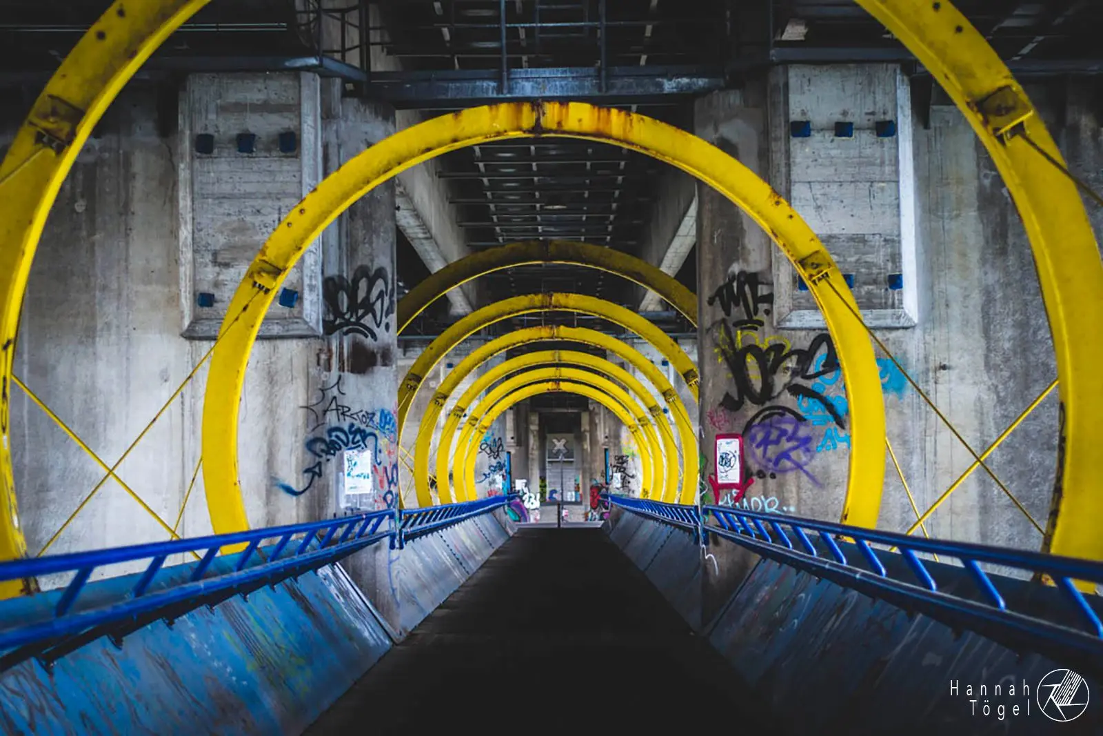 Los geht es bei der U2 Station Hardegggasse und durch den Friedhof Stadlau und über den Mühlgrundweg, vorbei am Strandbad Stadlau, bringt einen die Route schnell zum Mühlwasser. Weiter zum kleinen Schilloch und entlang der neuen Donau, überquert man das Gewässer über die Praterbrücke, die durch ihre Architektur begeistert und ein beliebtes Fotomotiv ist. Am anderen Ufer der Donau mussten wir unsere Tour leider unterbrechen.